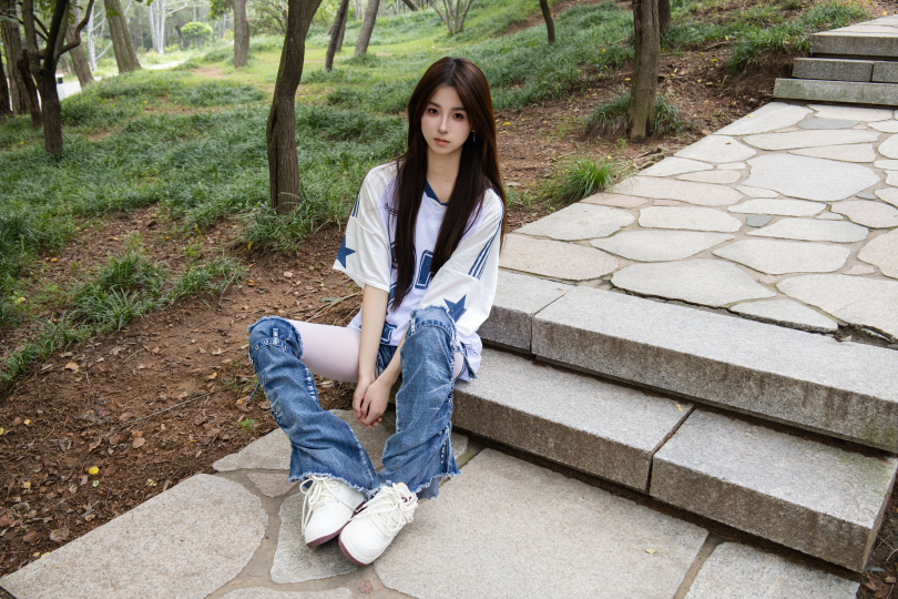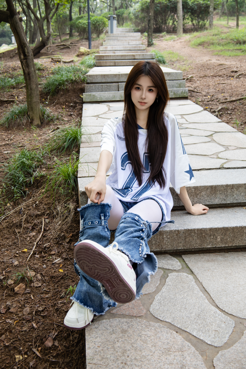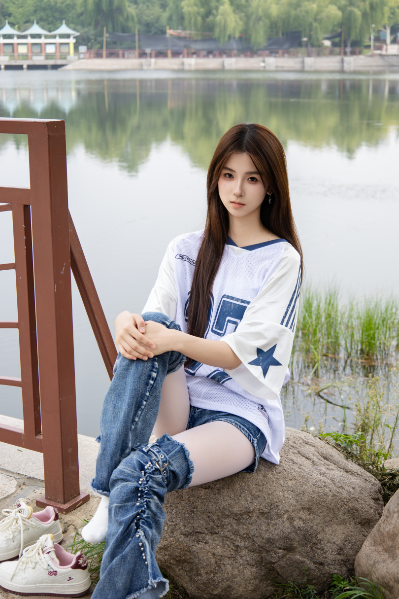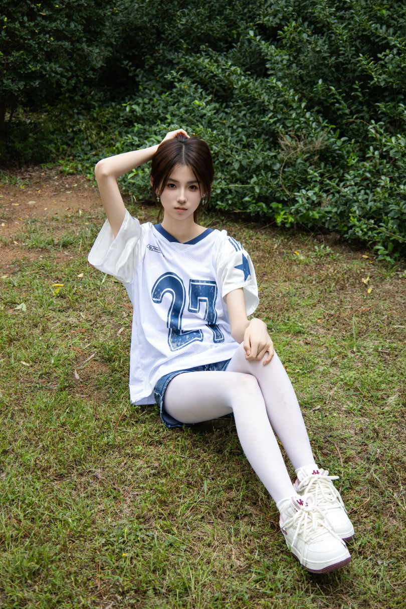 搭配内容:白色体恤、牛仔短裤、牛仔腿套、白色丝袜、白色棉袜、板鞋