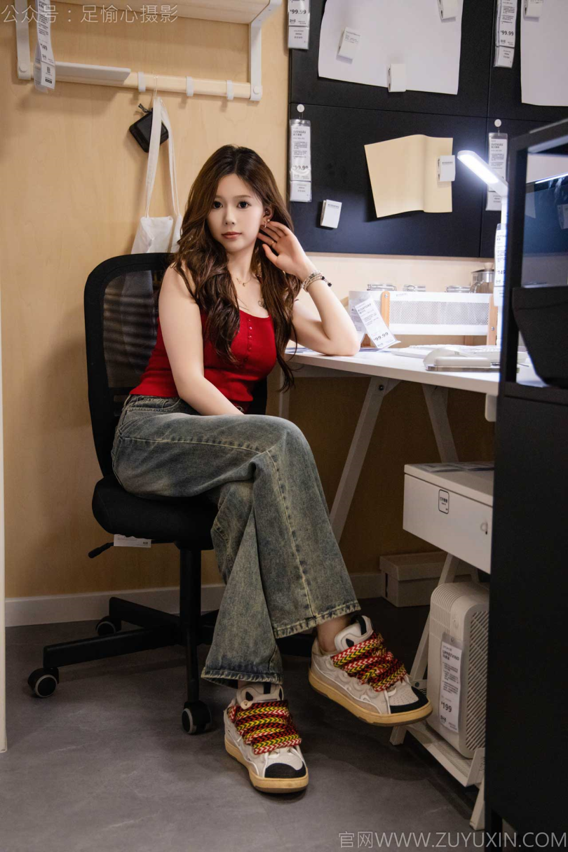 搭配内容:红色吊带、牛仔长裤、宽松板鞋、白色棉袜、裸足