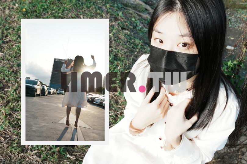 新人女孩深夏初曝光,在午後陽光下草地上散步,走過球場、水泥地停車場時還開心地飛了起來;